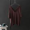 Kurzarm T-Shirt Damen Sommer Dünn Locker Lässig Basis-Shirt V-Ausschnitt Rückenfrei Unregelmäßiges Oberteil