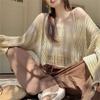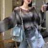 Sommer-Strickhemd mit Farbverlauf, langärmelig, hohl, Sonnenschutz, lockere Fledermausärmel, dünne Optik, Schlankheitsoberteil