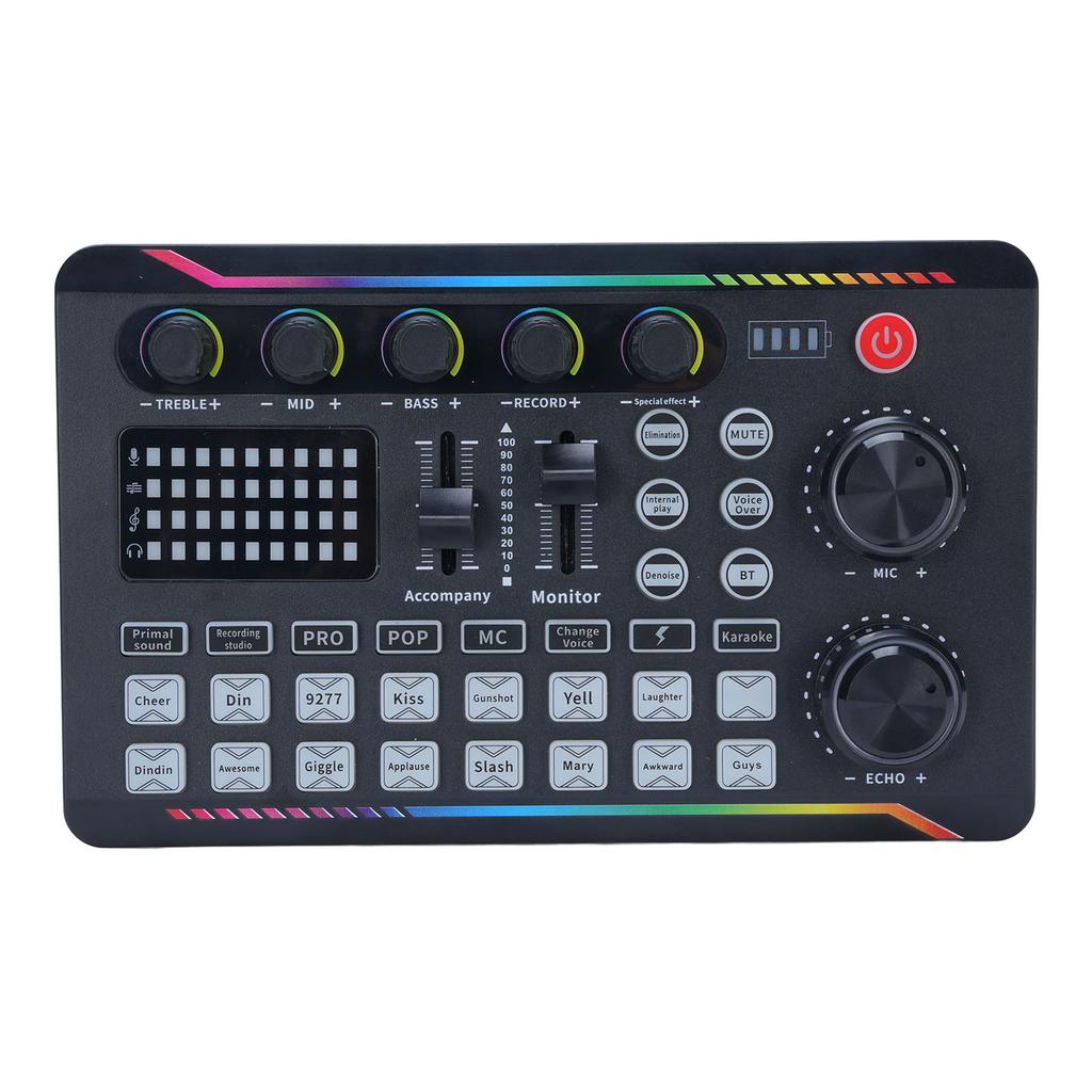 1. Podcast-System: Durch die Verwendung eines digitalen intelligenten Verarbeitungschips ist das Signal stabil und klar, und die intelligente Rauschunterdrückung hat keine Verzögerung.. USB-Soundschnittstelle. Unabhängiger Bluetooth-Schalterschlüssel, unterstützt drahtlose Bluetooth-Begleitung. Mit dem eingebauten Akku mit 1200 mAh Kapazität ist es nicht erforderlich, die Stromquelle häufig anzuschließen. Diese Soundkarte hat ein kompaktes, tragbares Design, nimmt nicht zu viel Platz ein und ist leicht zu transportieren.