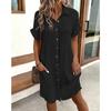 Vintage Frauen Solide Mini Kleid Sommer Mode V-ausschnitt Drei Viertel Ärmel Baumwolle Leinen Kleid Damen Casual Urlaub Vestidos