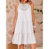 Damen Sommer Freizeit Neckholder Kleid Häkel Hohl A-Linie Strand Sommerkleider