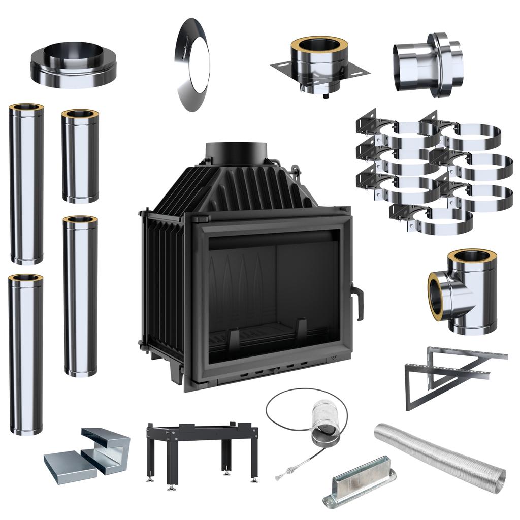 Maximale Wärmeausnutzung durch dicht angeordnete Heizkörper und die Wand des Einsatzes aus hochwertigem Gusseisen mit einer Stärke von 8 mm.