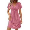 VEZFAA Damenmode Sommer Frühling Einfarbiger Druck Kurzarm V-Ausschnitt Hohe Taille Freizeitkleider