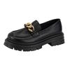 Damenschuhe Damenmode Mary Janes Runde Zehen Flats Loafers Oxfords Plattform Casual Metallkette Schnalle Damen Heels Schwarz
