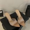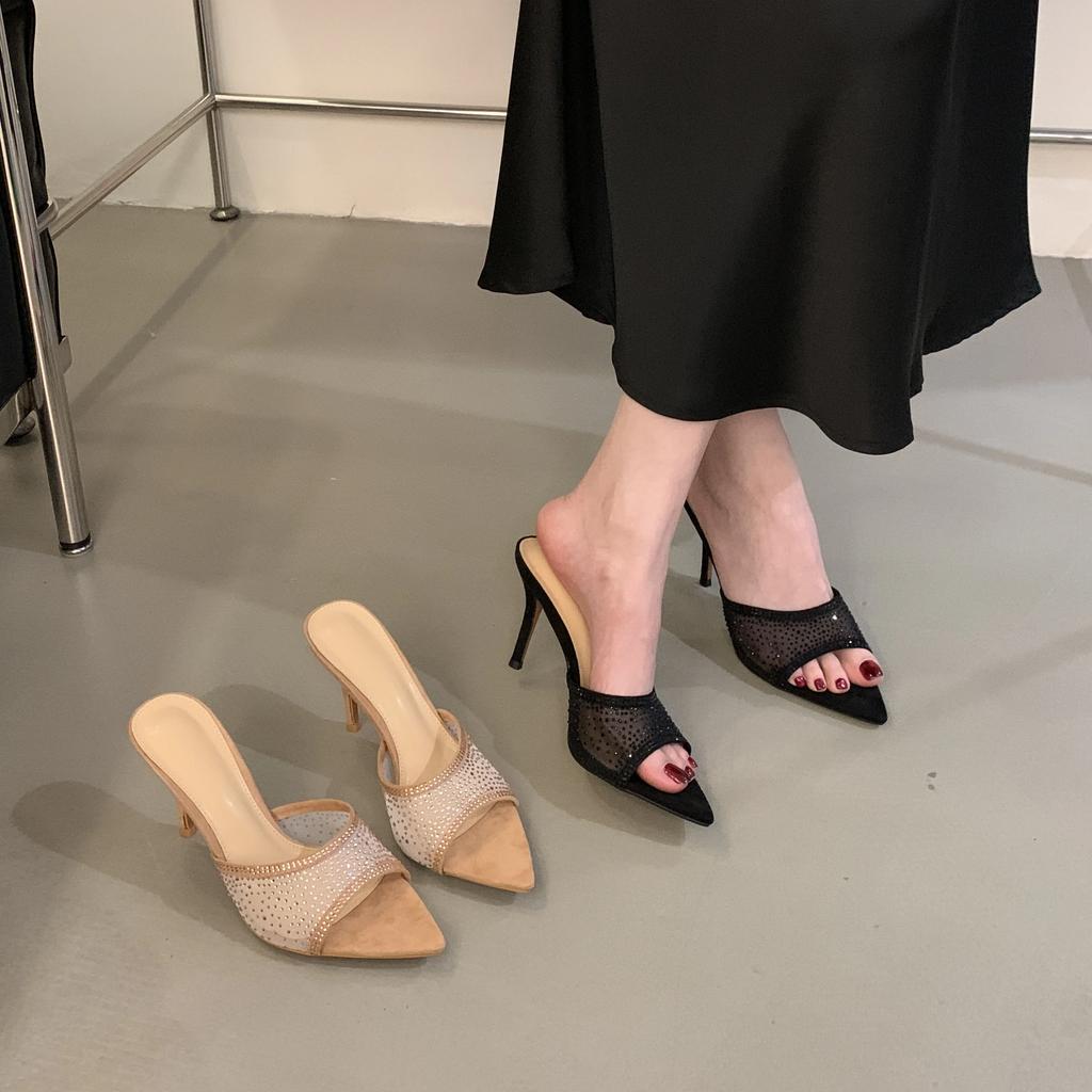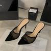 Sommermode Damen Spitzschuh Strass Mesh Wildleder Stiletto Hoher Absatz Pantoletten Damen Party Kleiderschuhe