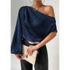Damen Schrägschulter Langarm Unifarbenes Shirt Sexy Schulterfrei Lockeres Temperament Satinblusen & -hemden