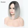 Synthetische kurze Ombre-Perücke von dunkler Wurzel bis Weinrot, gerade, 34 cm, Bob-Haarperücke für Frauen, natürlich aussehend, für den täglichen Gebrauch oder als Cosplay-Perücke