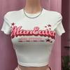 Europäisches und amerikanisches Y2K Ins Sommer Damen Casual Rundhals bedrucktes Crop Top Slim Fit T-Shirt