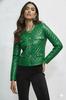 Stylish Biker Motorcycle Women's Jacket Green Genuine Lambskin Leather Handmade