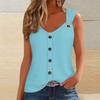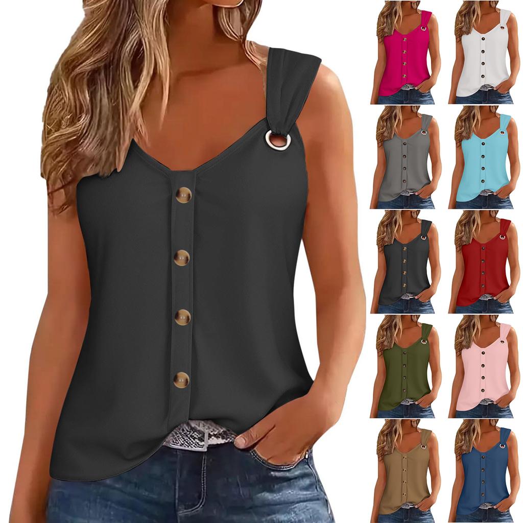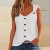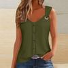 Damenmode Lässig Locker Ärmellos Geknöpft V-Ausschnitt Einfarbig T-Shirt Top
