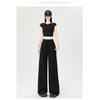 Frühling und Sommer Hohe Taille Drapierte und Dünne Kordelzug Gerade Jogginghose