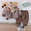 Halten Sie Ihren Kleinen diesen Herbst und Winter gemütlich und stilvoll mit diesem entzückenden zweiteiligen Anzug. Dieses Set aus weichem, hochwertigem Baumwollsamt besteht aus einem Langarmpullover und einer passenden Hose und ist somit perfekt für kühle Tage.. Die durchdachten langen Ärmel bieten zusätzliche Wärme, während der dazugehörige Schal für zusätzlichen Komfort und einen Hauch von Charme sorgt.. Dieses Outfit ist ideal zum Spielen drinnen und für Abenteuer draußen und sorgt dafür, dass Ihr Baby es die ganze Saison über gemütlich und bequem hat.