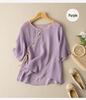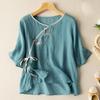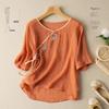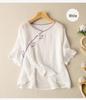 Werten Sie Ihre Sommergarderobe mit diesem stilvollen und bequemen Damen Baumwoll-Leinen Stickhemd mit lockerer Passform auf. Dieses Hemd aus atmungsaktigem Baumwollmaterial verfügt über einen eleganten schrägen Kragen und kurze Ärmel und ist perfekt, um bei warmem Wetter kühl zu bleiben.. Die aufwendige Stickerei verleiht einen Hauch nationalen Stils und macht es zu einer einzigartigen und modischen Ergänzung für jedes Outfit.