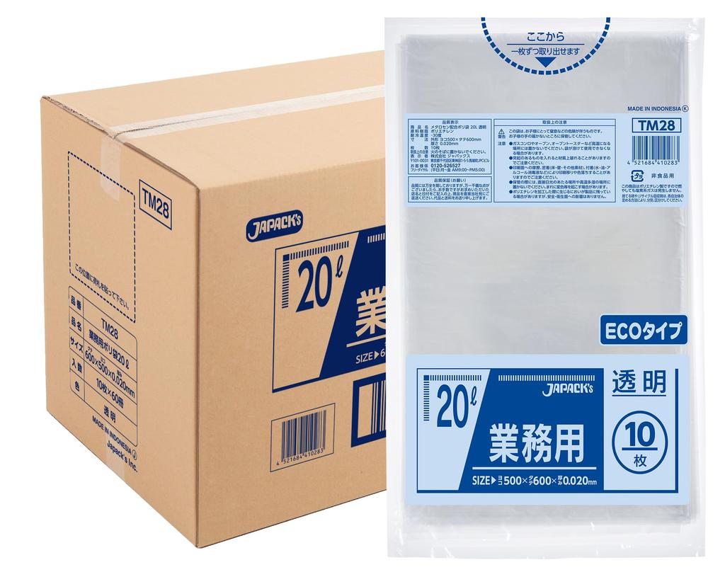 Japax Garbage Bag 20L Transparent Thickness 10 sheets x 60 books TM28 Plastic bag with metallocene compound that resists stretching Bulk purchase Case