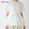 Korean Fashion Sommer Frauen Streetwear Top Kurze O Neck Weiß Schwarz Layered Spitze Rüschen Patchwork T-Shirt Kurzarm Feminine Damen T