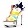 2025 summer new women's shoes versatile stiletto high heels T-type straps patent leather waterproof table crystal sandals