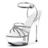 Thin heel sandals women's summer 2025 new waterproof table one-word buckle rhinestone open-toed fish mouth high heels silver