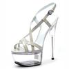 2025 summer new versatile waterproof table stiletto black high heels one-word sandals 17/15cm open-toed fish mouth