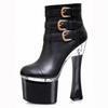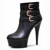 Spring and Autumn Fashion Low Cylinder Buckle Round Head Short Boots Glue Bottom Round Head Black Waterproof Table Ultra High Heel Fashion Boots 20CM