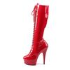 Direct sales 24 years of adhesive bottom flat bottom tall tube women's round head self-inspection PU black fashion boots 15cm
