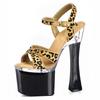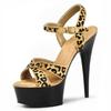 Wild leopard print crystal heel 15cm high heels hate sky high stiletto waterproof table hollow cross with sandals