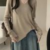Herbst Neu V-Ausschnitt Strickware Langarm T-Shirt Damen Locker Schlankmachend Unterteil mit Studentenoberteil Tide