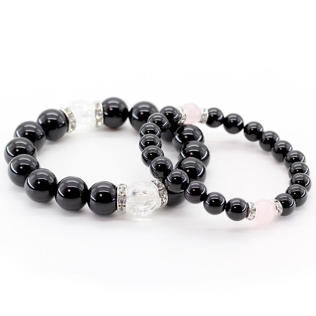 Onyx Gebetsperlen Amulett Paar Armband Kraftstein mit Geschenkbox aus Paulownia [Ishiki] [b033]