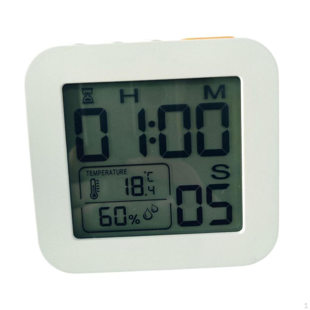 - 【Versatile Functionality】: This Digital Electronic Temperature Humidity Meters Gauge is ideal for monitor indoor environments, ensuring optimal comfort in your home. It also features 12/24 hours conversion, 2 sets of alarms, , count up, cycle timer, Fahrenheit/Celsius conversion, temperature, ringtone loud/soft/silent settings, snooze function. ( range: 99 hours 59 minutes 59 seconds)