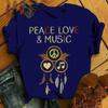 Peace Love Music Wind Chimes Print Women T Shirt Short Sleeve O Neck Loose Women Tshirt Ladies Fashion Tee Shirt Tops Clothes