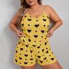 Übergröße Damen Pyjama Nachtwäsche Pyjama Set Nachthemden Camisole Shorts Nachtkleidung Grün Liebesdruck Glatt Weich