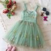 Mädchen Modekleid 2025 Sommer Kinder Blumenstickerei Mesh Prinzessinnenkleid Mädchen Geburtstag Neckholderkleid