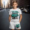 2024 Neues Auto Sommer Kurzarm T-Shirt Anzug Shorts Kinder Kleinkind Babykleidung 3D Cartoon Druck Mode Jungen Mädchen