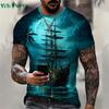 Piratenschiff-Musterdruck Herrenbekleidung T-Shirt für Männer Kurzarm-T-Shirt Fitnessbekleidung Männer Männliches T-Shirt Piratenschiff-Druckkleidung