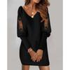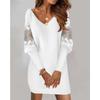 IHUASU Herbst V-Ausschnitt Langarm Bedrucktes Spitzen-Patchwork-Kleid für Damen
