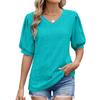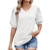 Frühling und Sommer Neues einfarbiges V-Ausschnitt Hohl Kurzarm Casual Damen T-Shirt