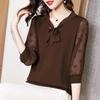 Blusen für Damen Frühling Sommer V-Ausschnitt Halbarmhemd Einfarbig Knopf Buchstabenaufdruck Schleife Locker Stilvoll Übergröße Oberteile
