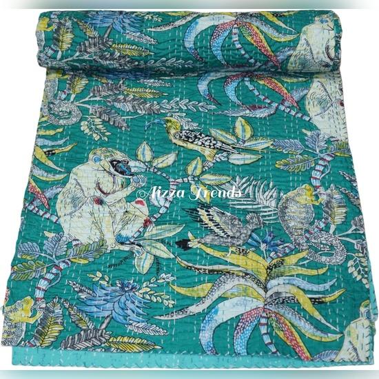 Kantha Stitching: The quilt features traditional Kantha stitching, a vintage style of hand-embroidered running stitchesSize: Ideal for use on a bed, sofa, or as a blanket for a cozy touch, offering both aesthetic value and comfort.Unique Stitching: Each quilt features the traditional 'kantha' running stitch, a centuries-old embroidery technique passed down through generations. .