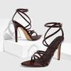 Liyke Weinrot Lackleder Schmalband Knöchelriemchensandalen Damen Hochzeit Bankettschuhe Sexy Spitzzehen Stripper Heels Sandale