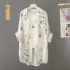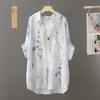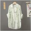 Sommer Anti-Falten und Hängend Tuschemalerei Bedrucktes und Gefärbtes Hemd Locker Langärmlig Kragen Dünnes Hemd Sonnenschutzkleidung