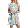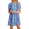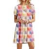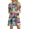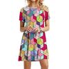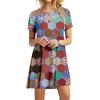 S-6XL Übergröße Mode Damen 3D Geometrischer Druck Kleid Lässig Rundhals Kurzarm Kleid Sommer Locker Mini Kurzes Kleid