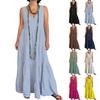 Damenkleid aus Baumwolle und Leinen, sexy Camisole-Kleid mit Krawatte an den Schultern, lässig, locker, ärmellos, gerüscht, mehrlagig, fließend