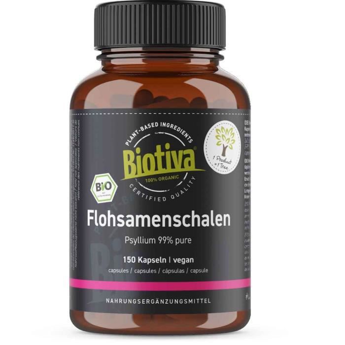 Téguments de psyllium capsules bio 150 capsules - 700mg - fibres alimentaires - digestion - végan, paléo - plantago ovata - psyllium