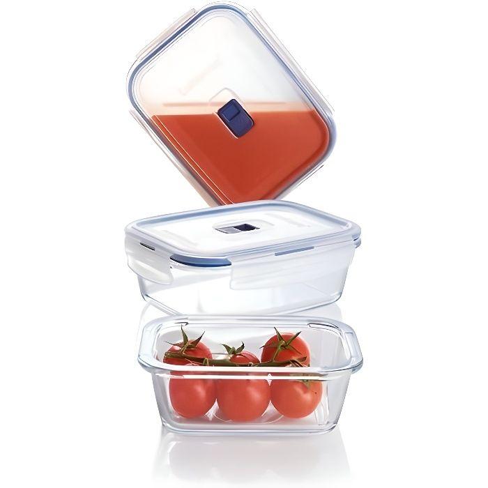 Luminarc set de 3 boites rectangles + couvercles pure box active transparent et bleu
