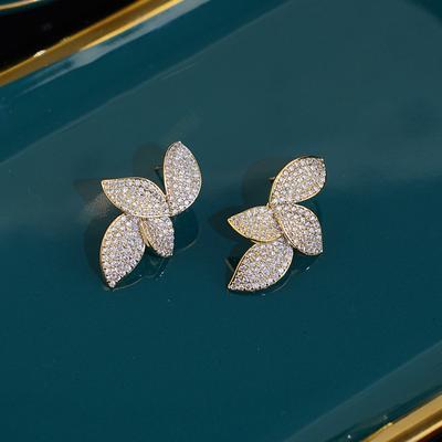 Unique Design Temperament Light Luxury Micro Diamond Petal Earrings Design High-End Earrings Stud Earrings