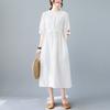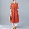 Summer New Fashion Vestidos Women Casual Elegant Cotton Ramie Embroidery Loose Plus Size Vintage Beach Midi Dress M-2XL