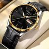 Mechanische Herren-Quarzuhr mit Doppeltem Kalender, Wasserdicht, Leuchtend im Dunkeln, Stahlbanduhr, Geschäftsuhr, Vollautomatisch