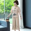 Damen Sommer Übergröße Freizeitanzug für Mittelalte und Ältere mit Altersreduzierendem Kurzarm-T-Shirt Oberteil + Cropped Hose Zweiteiler