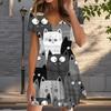 Sommermode Damen V-Ausschnitt Kurzarm Kitty Printed Kleid Sex Kurzer Rock Kleider