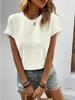 Elegantes, einfarbiges, lockeres, kurzärmliges Damen-T-Shirt mit Rundhalsausschnitt im Urlaubs- und Freizeitstil