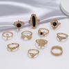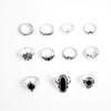 Europäischer und Amerikanischer Stil Schwarzer Edelstein Elefant Lotus Krone Kreuz 11-teiliges Ring-Set